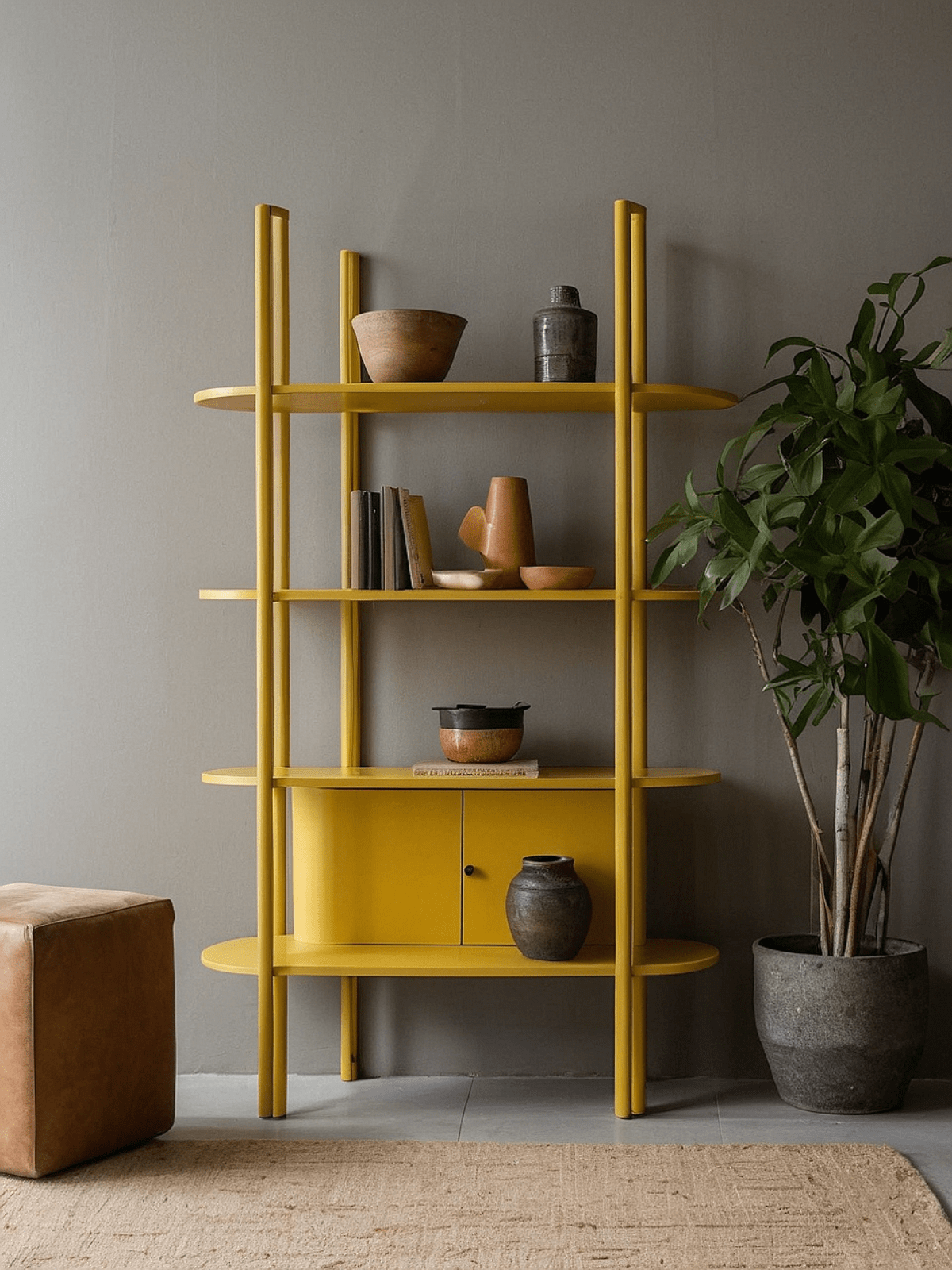 Denne hylde blev malet med møbelmaling i RAL-farven 1012 citrongul.
