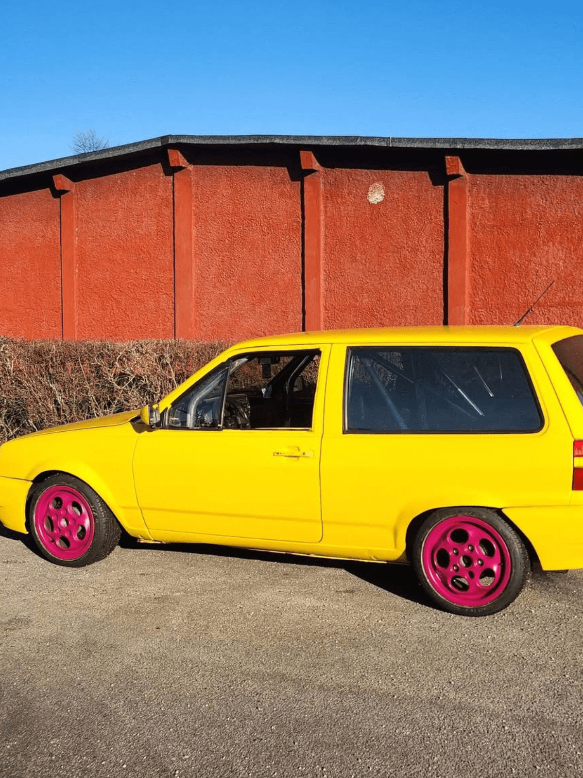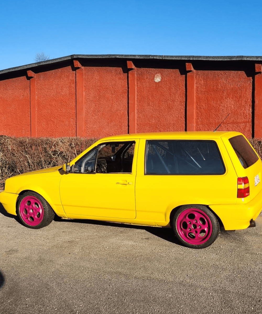 Denne bil blev lakeret med bilmaling i RAL-farven 1023 Trafikgul.