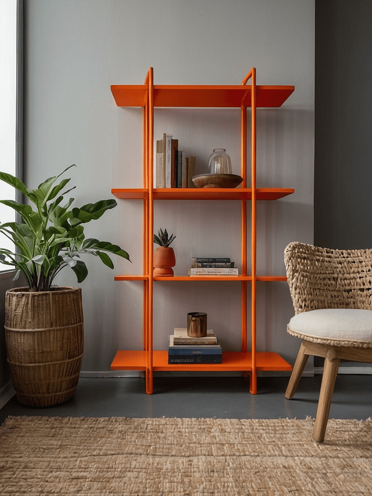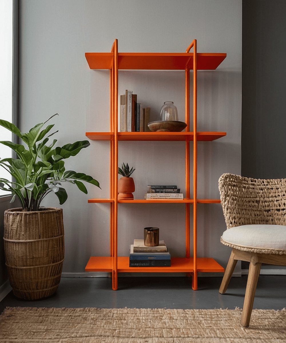Denne hylde blev malet med møbelmaling i RAL-farven 2009 Trafikorange.