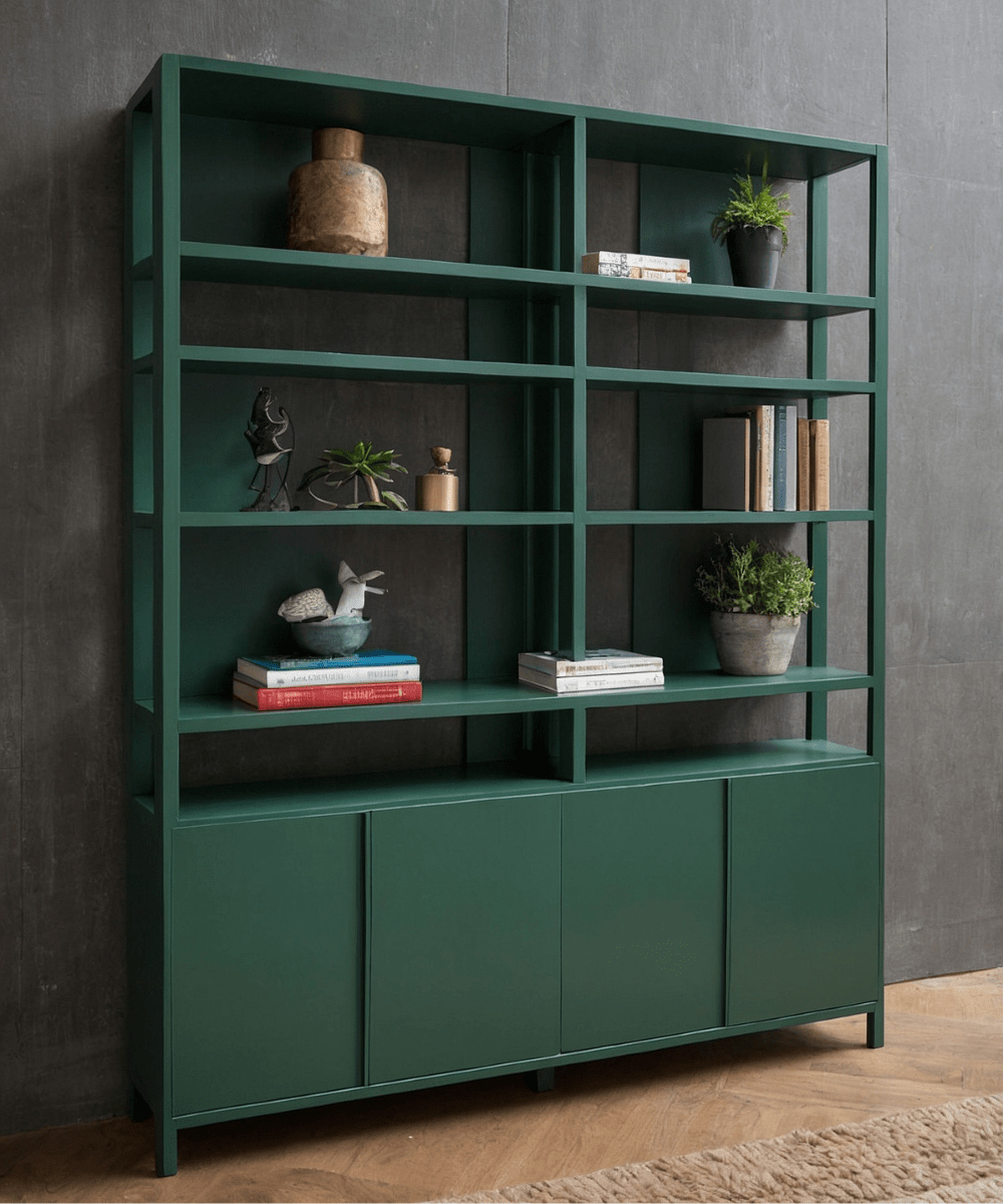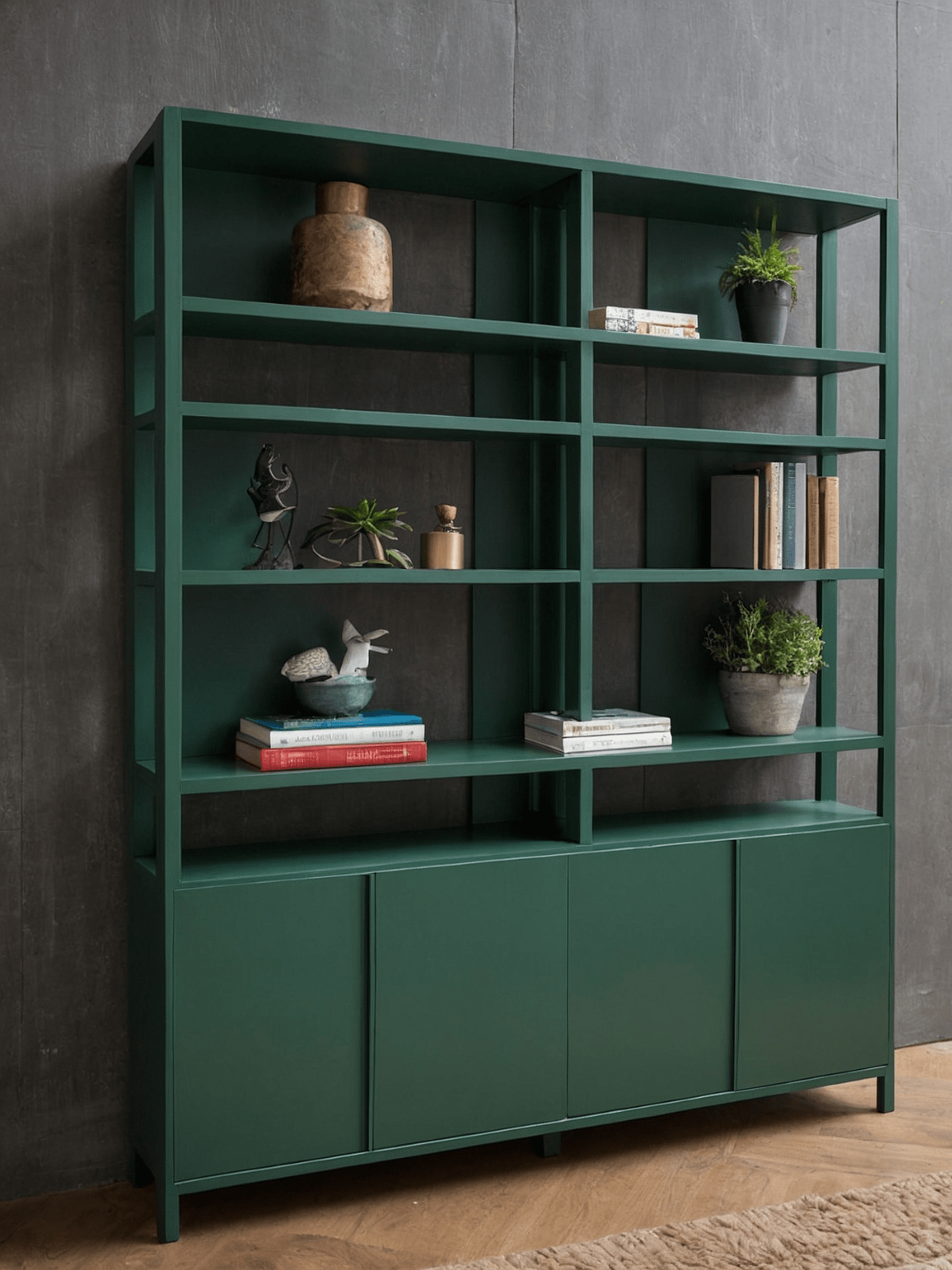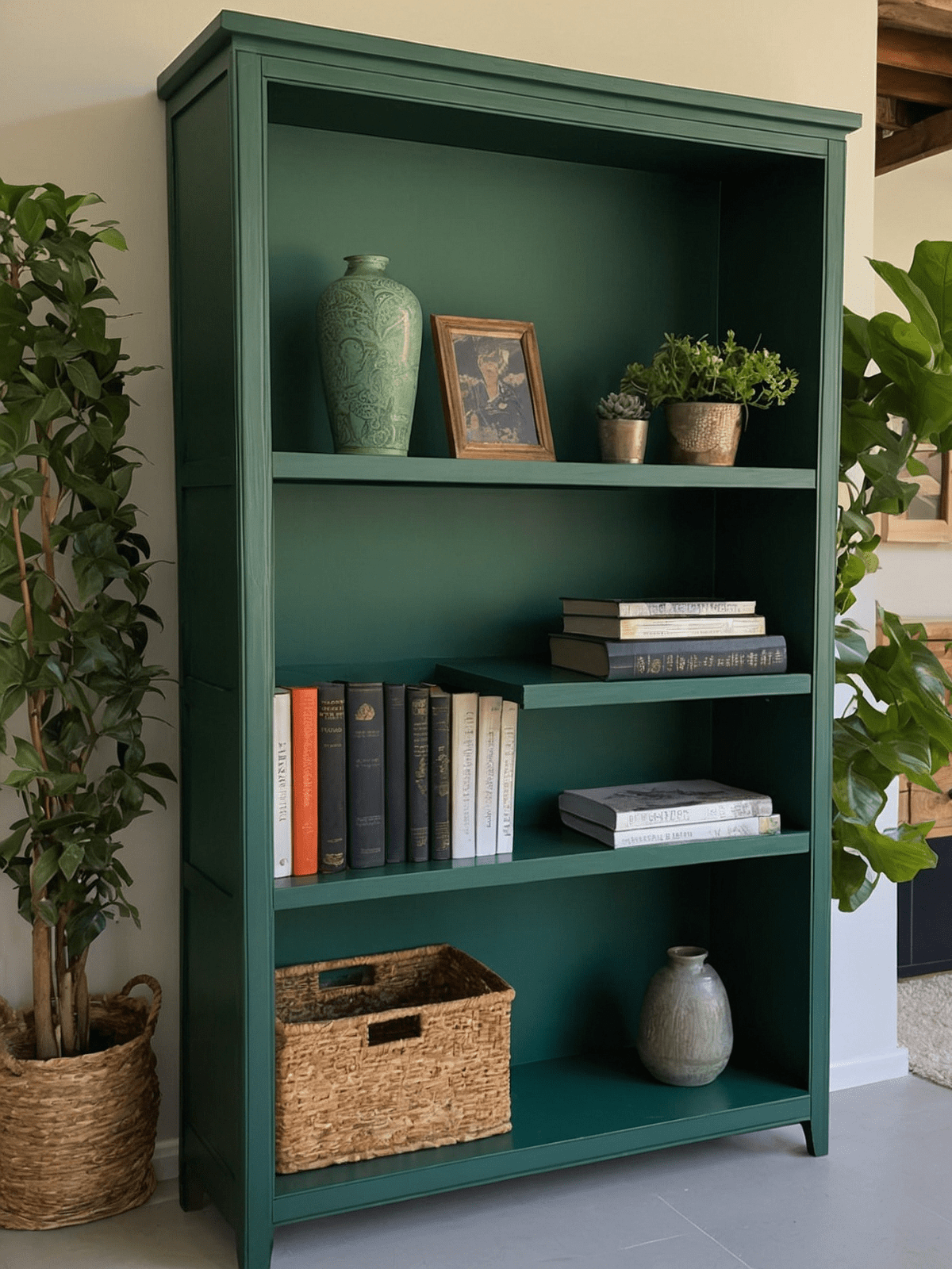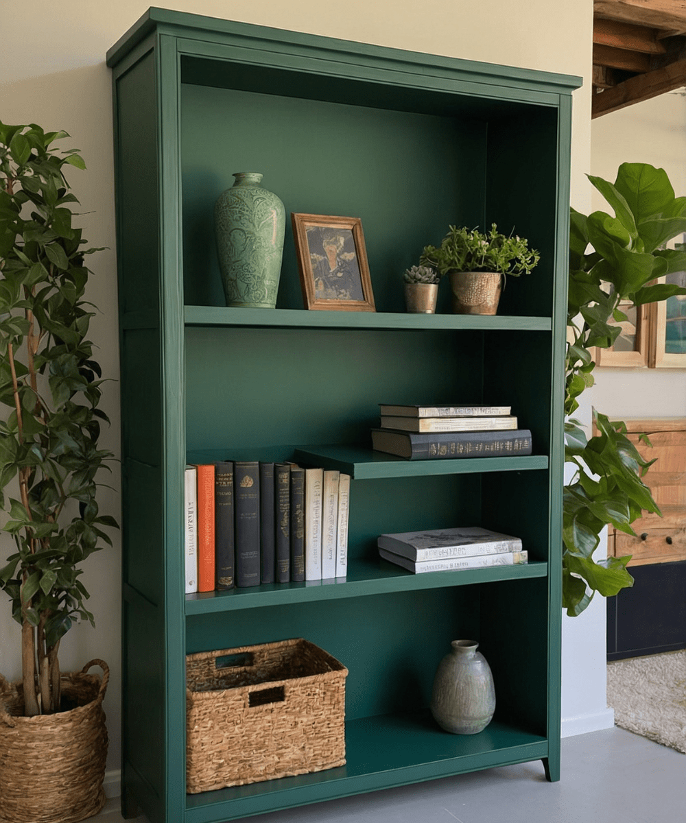 Denne hylde blev malet med møbelmaling i RAL-farven 6000 i platingrøn.