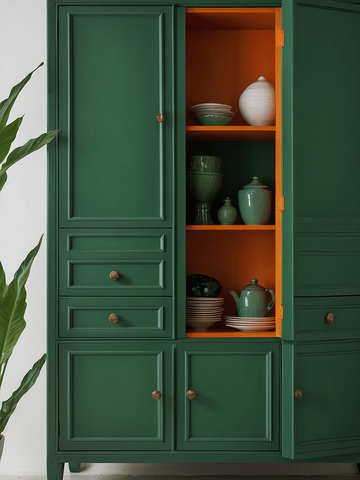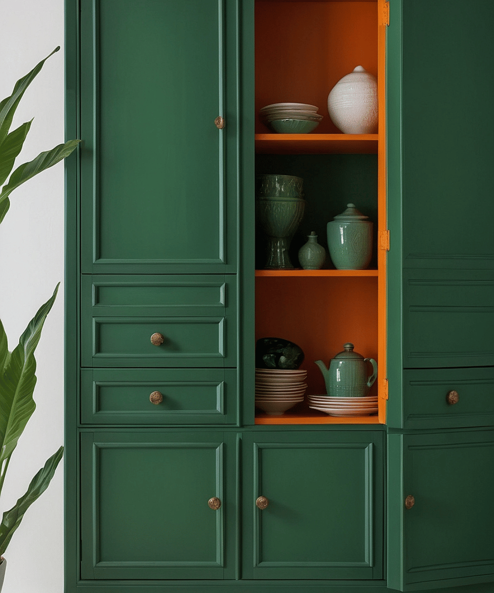 Dette skab blev malet med møbelmaling i RAL-farven 6028 fyrregrøn.