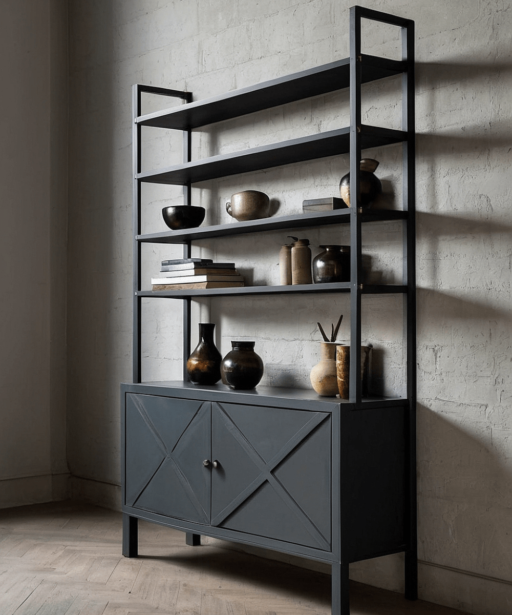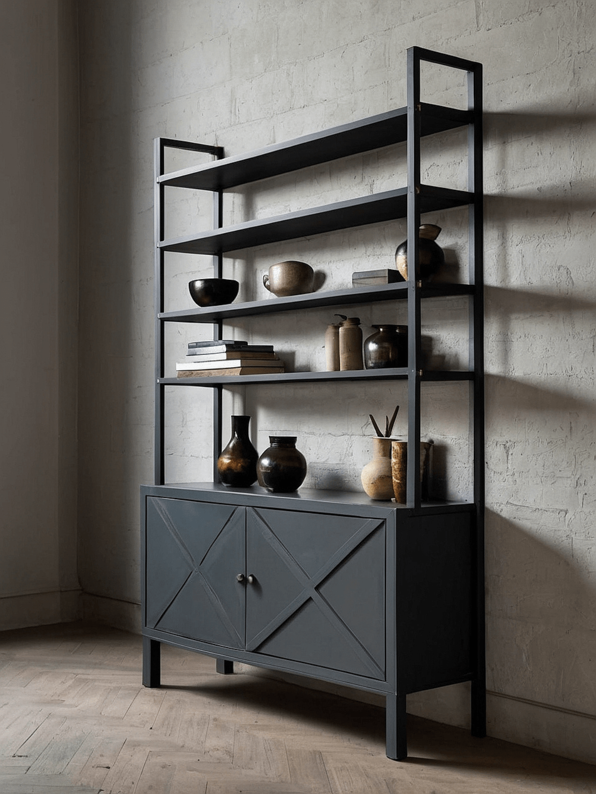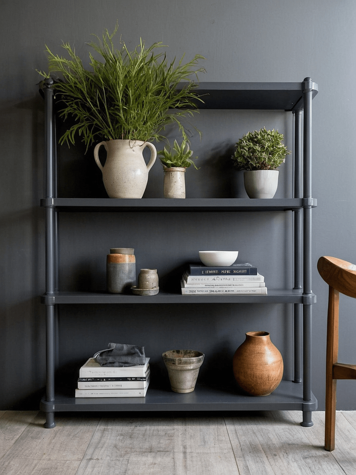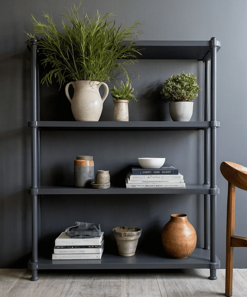 Denne hylde blev malet med møbelmaling i RAL-farven 7016 antracitgrå.