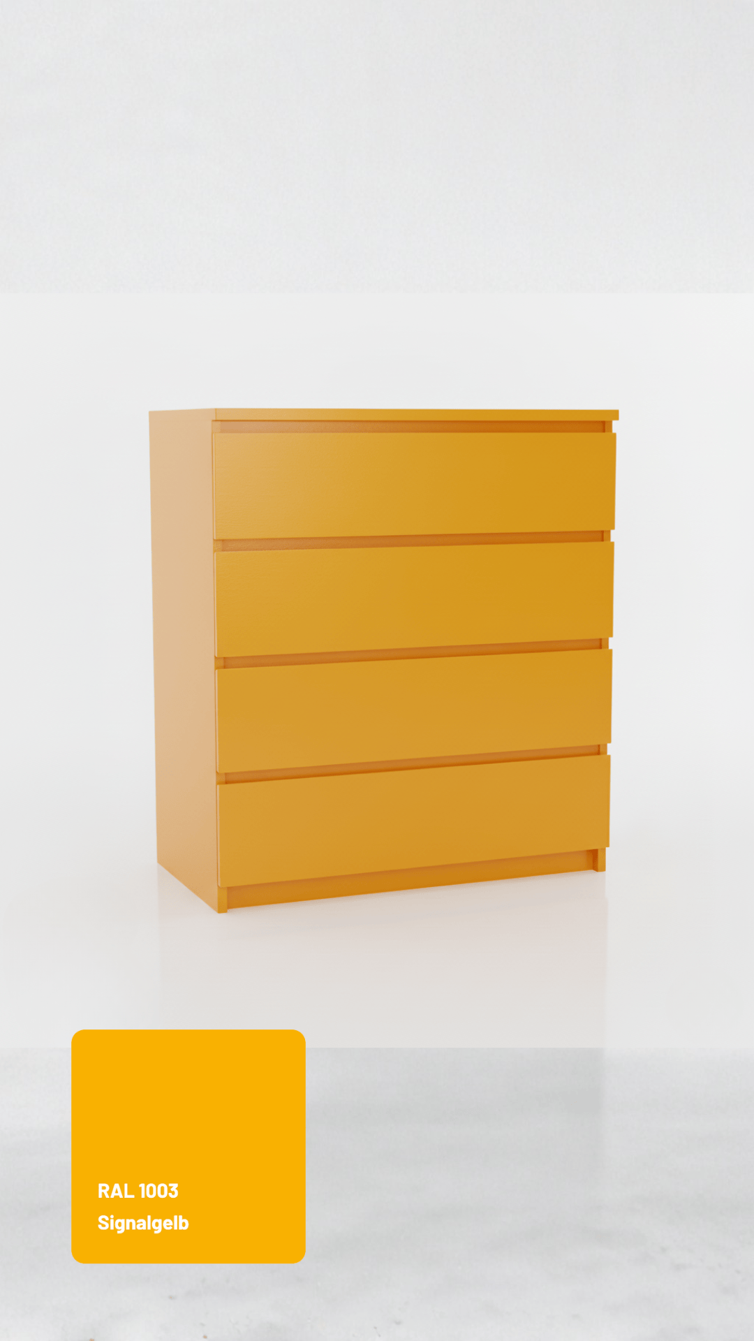 Dieses Regal wurde in dem RAL-Farbton 1003 Signalgelb gestrichen.