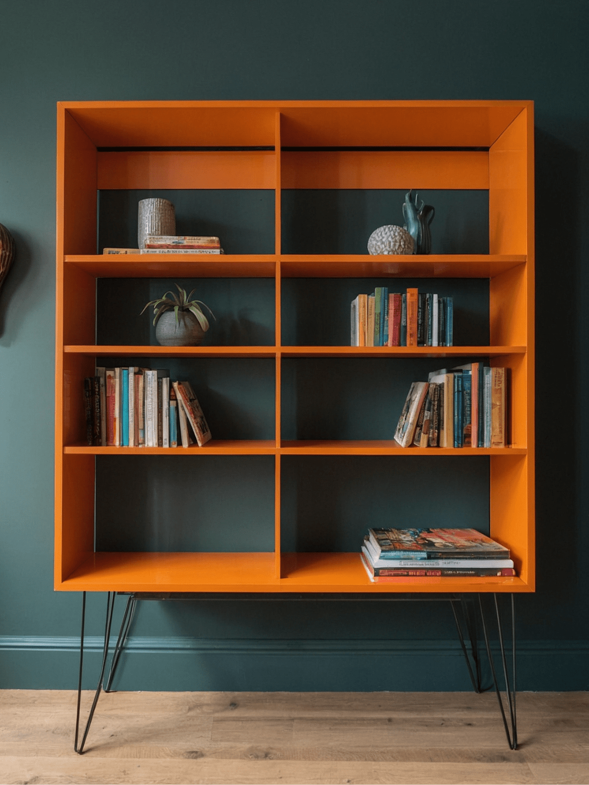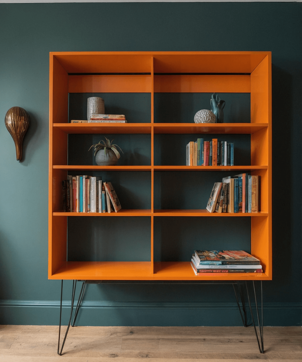 Dieses Regal wurde mit der Möbelfarbe in dem RAL-Farbton 2003 in Pastellorange gestrichen.
