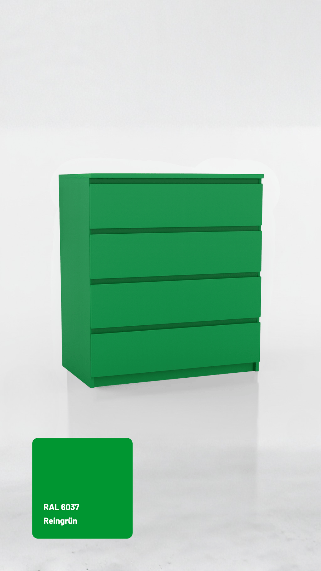 Dieser Schrank wurde mit der Möbelfarbe in dem RAL-Farbton 6037 Reingrün gestrichen.