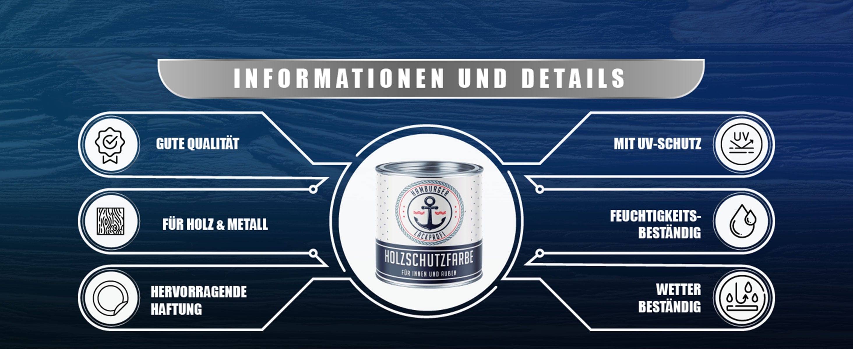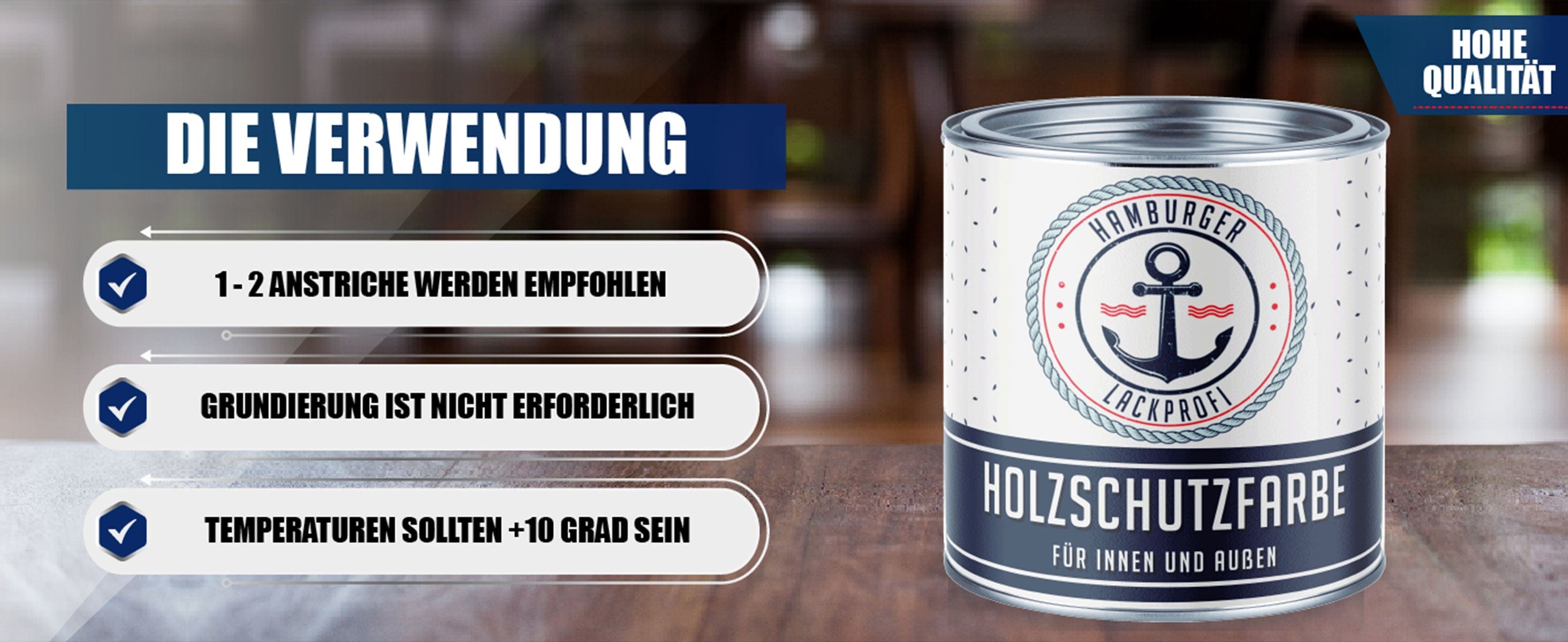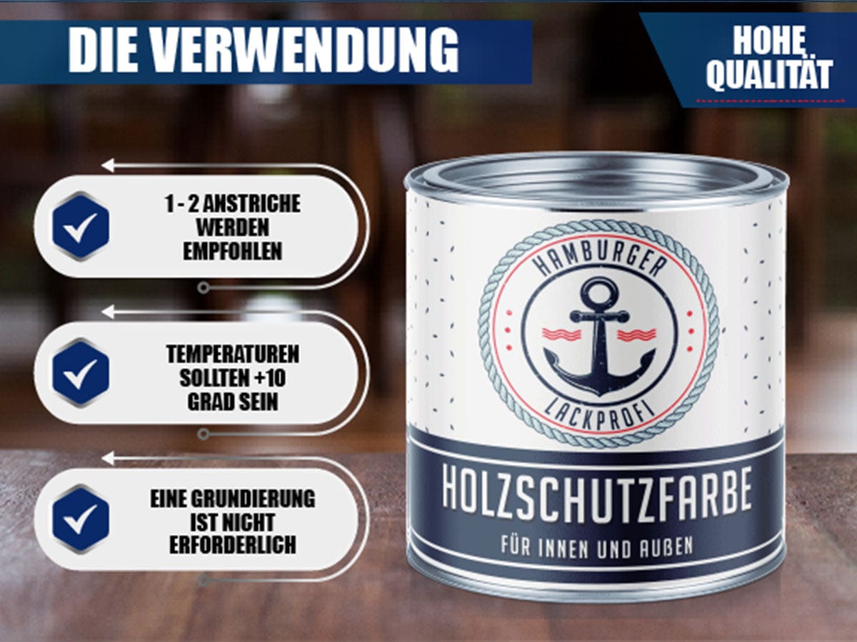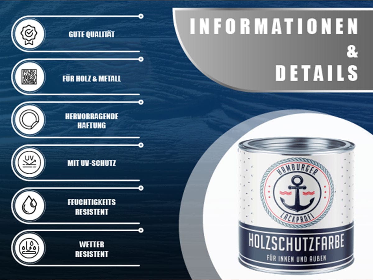 MOIN, MOIN! Mit der PU Holzschutzfarbe vom Hamburger Lack-Profi verleihst Du Deinem Holz (und Metall) nicht nur einen beeindruckenden Look, sondern auch einen Langzeitschutz, der seinesgleichen sucht. Ein Pinselstrich, und das Holz erstrahlt in neuem Glanz und Wetterbeständigkeit!