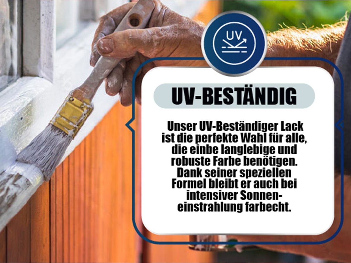 FÜR ALLE HOLZARTEN: Dieser Lack – Made in Germany – bietet Dauerhaftigkeit gegen alle Wettereinflüsse, hohe Deckkraft und ist darüber hinaus stoß- und schlagfest. Und das Beste? Die extrem UV-Beständigkeit sorgt dafür, dass Dein Holz nicht vergilbt.