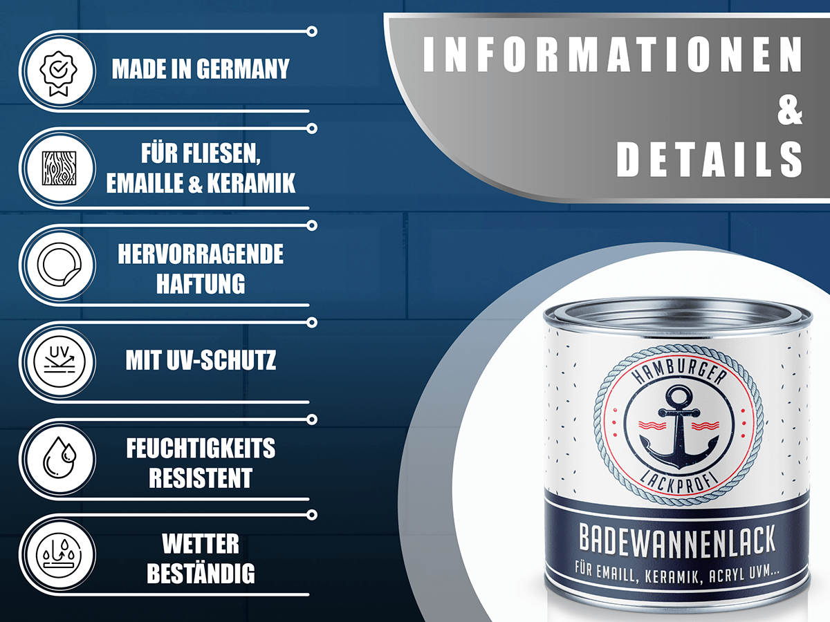 MOIN, MOIN! Von Kunststoff und Plastik über Email sowie Acryl bis hin zu GFK und Keramik: Mit dem Hamburger Badewannenlack bringen Sie völlig neuen Glanz in Ihr Badezimmer – und zwar kostengünstig, ohne großen Aufwand und mit Langzeitschutz.